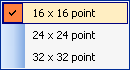 16 x 16 point The toolbar's icon size will be 16 x 16 point 24 x 24 point The toolbar's icon size will be 24 x 24 point 32 x 32 point The toolbar's icon size will be 32 x 32 point Windows