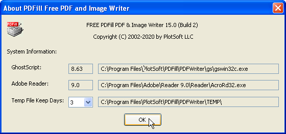 GhostScript GhostScript's version and its installation path. Adobe Reader Adobe Reader's version and its installation path. Get update. Temp File Keep Days When Printing to PDFill Writer, a temporary PS file is generated. This file can be used for later PDF saving if "Keep Last PS file after Saving" is selected. The option decides the number of days that this PS file will be kept inside PDFill Temporary folder.